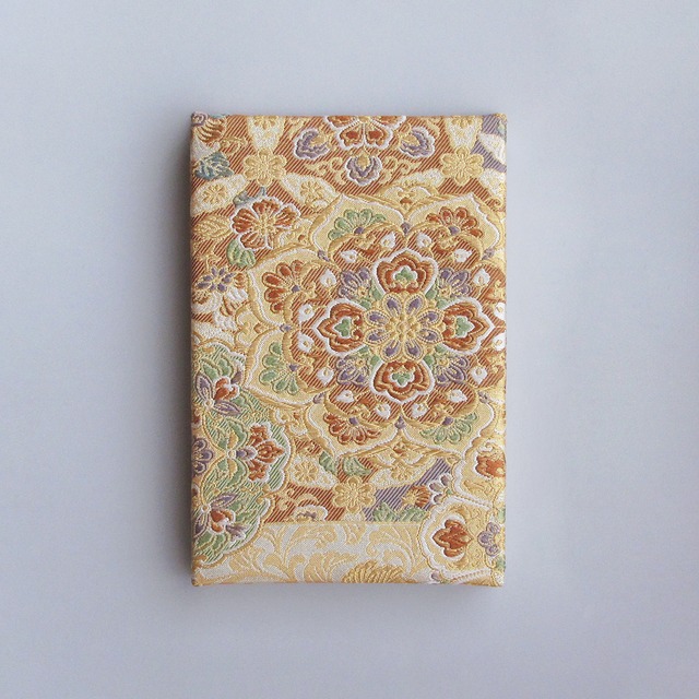 御朱印帳 和柄 アンティーク帯使用 中無地 大判 | ゴールド シンプル No.504