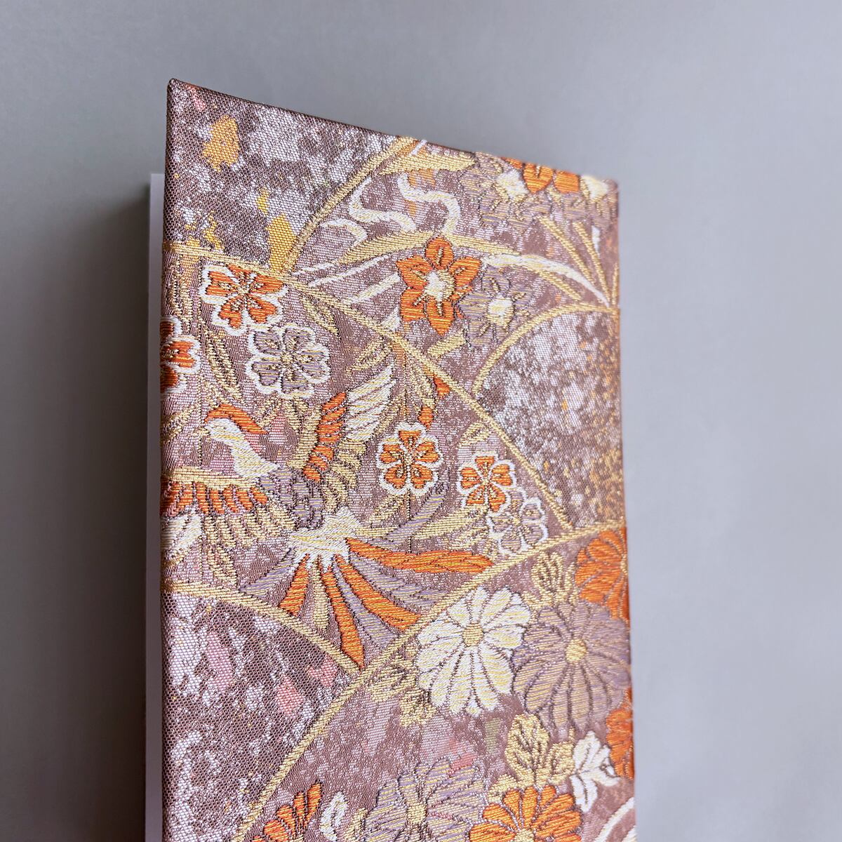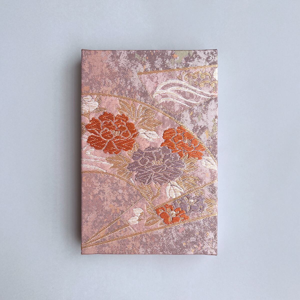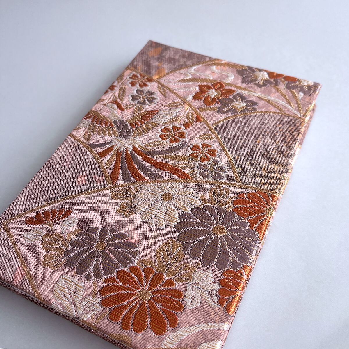 御朱印帳 和柄 アンティーク帯使用 大判|鳳凰 菊 桜 ピンクベージュ 薄紅 No.212