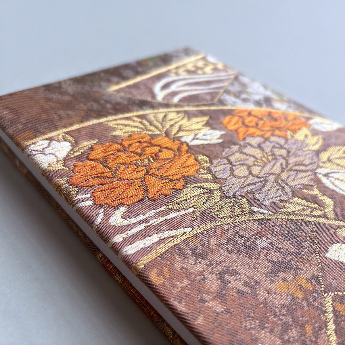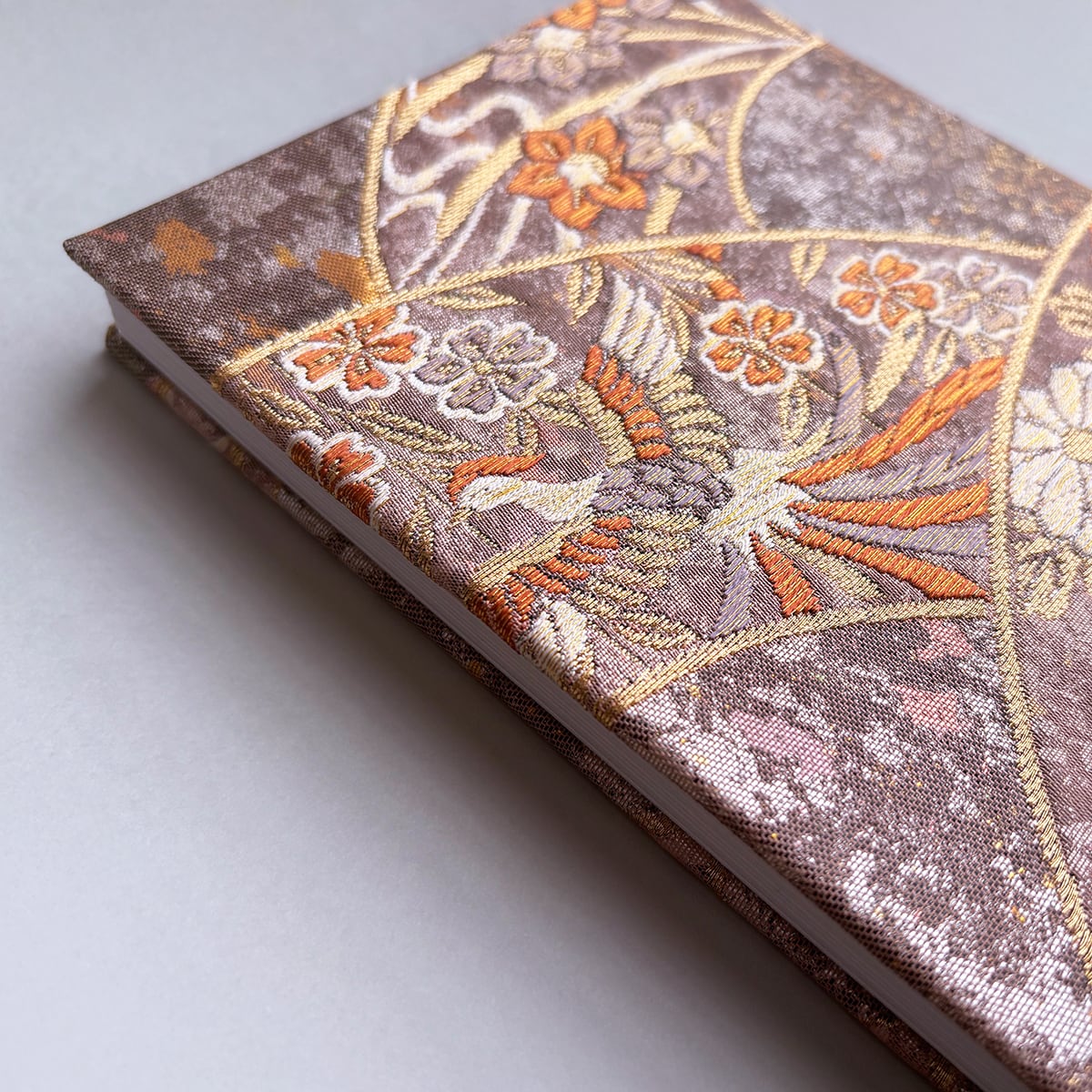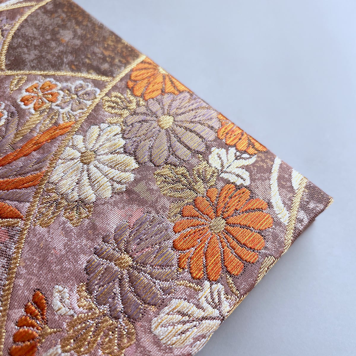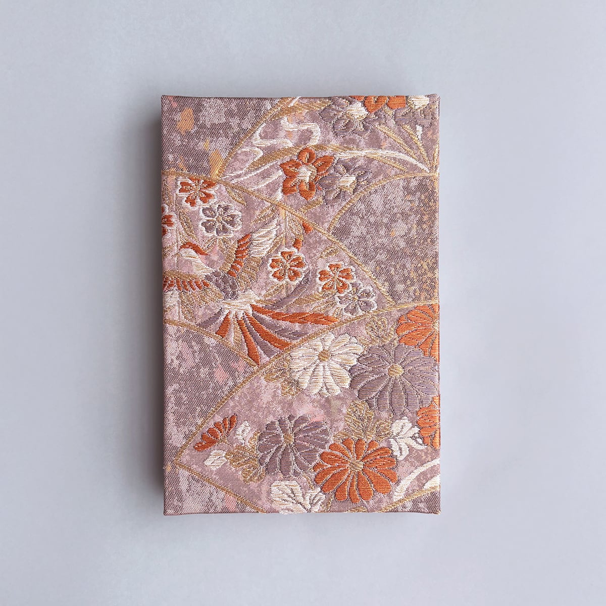 御朱印帳 和柄 アンティーク帯使用 大判|鳳凰 菊 桜 ピンクベージュ 薄紅 No.212